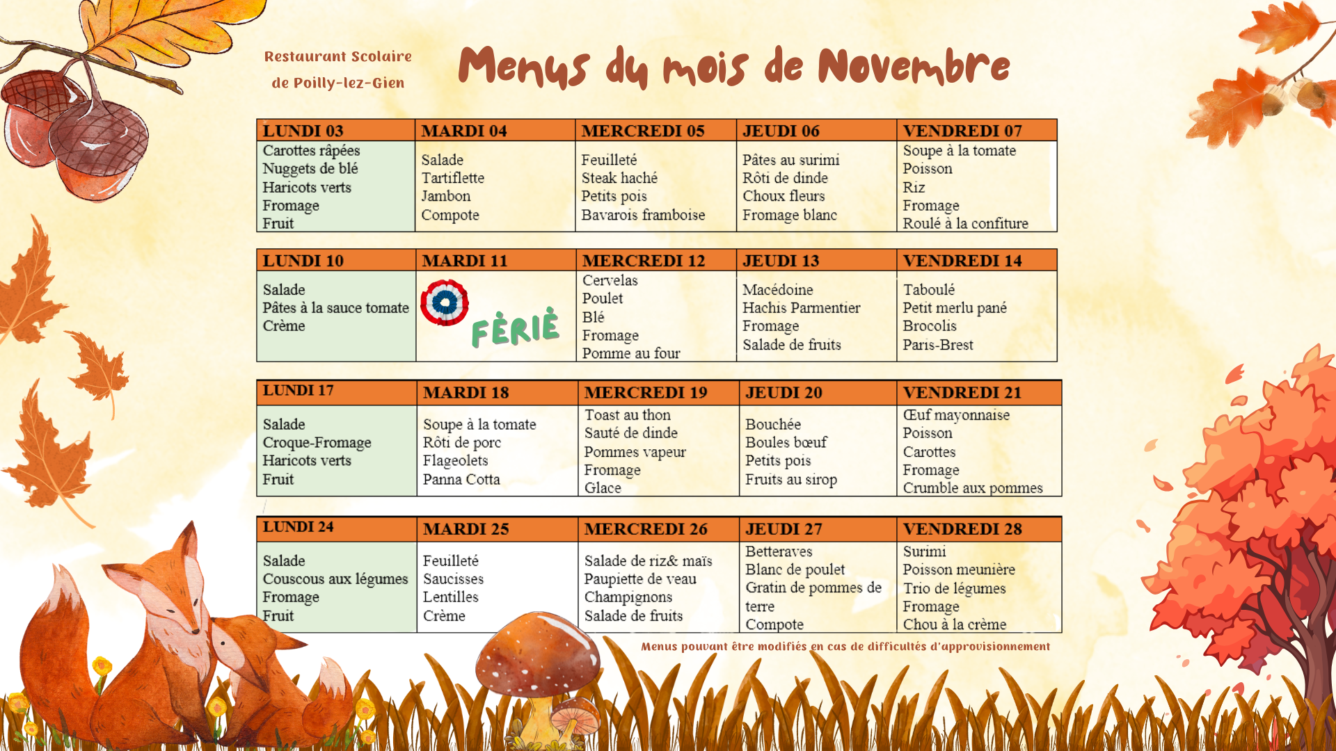 Pour télécharger le menu, cliquez ICI